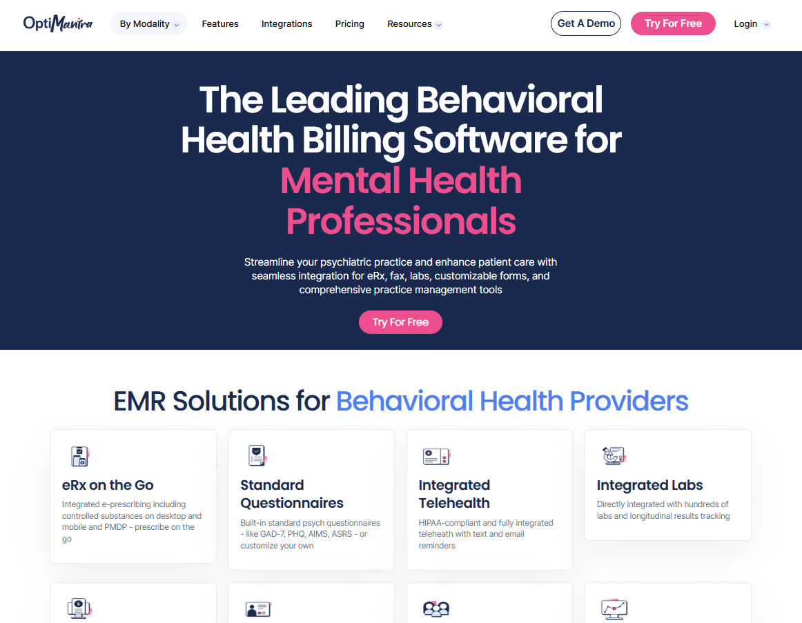 OptiMantra is a great choice for behavioral health practices in 2025. Unlike many EMRs that only serve therapists or psychiatrists, OptiMantra supports integrated, whole-person care, making it ideal for clinics that combine behavioral health with primary care, wellness, or psychiatry.