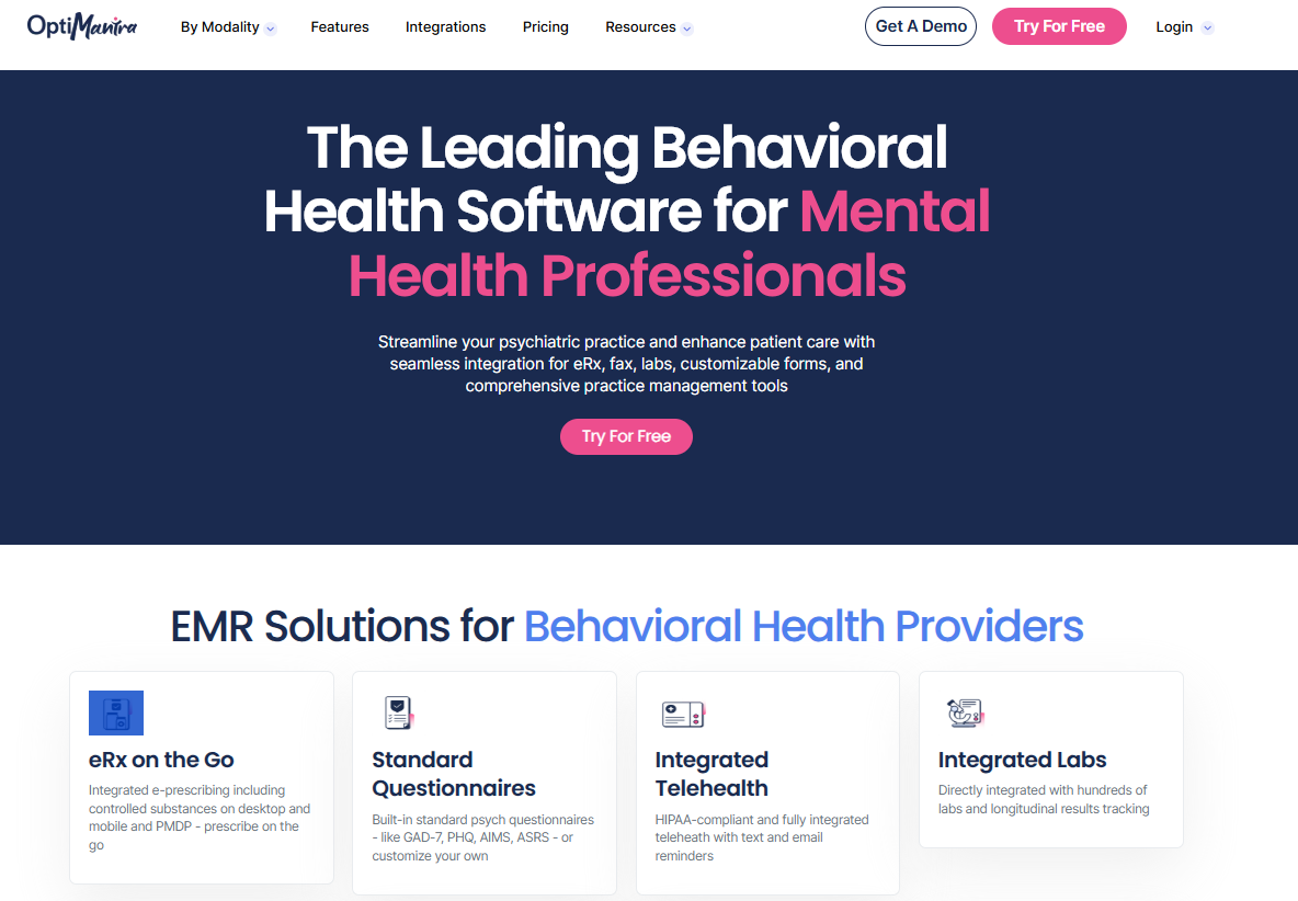 OptiMantra is a modern, all‑in‑one EMR and practice management platform built for specialized practices, including psychiatry, behavioral health, and integrative care. It supports detailed psychiatric documentation, customizable templates, medication management, and telepsychiatry within a single system.