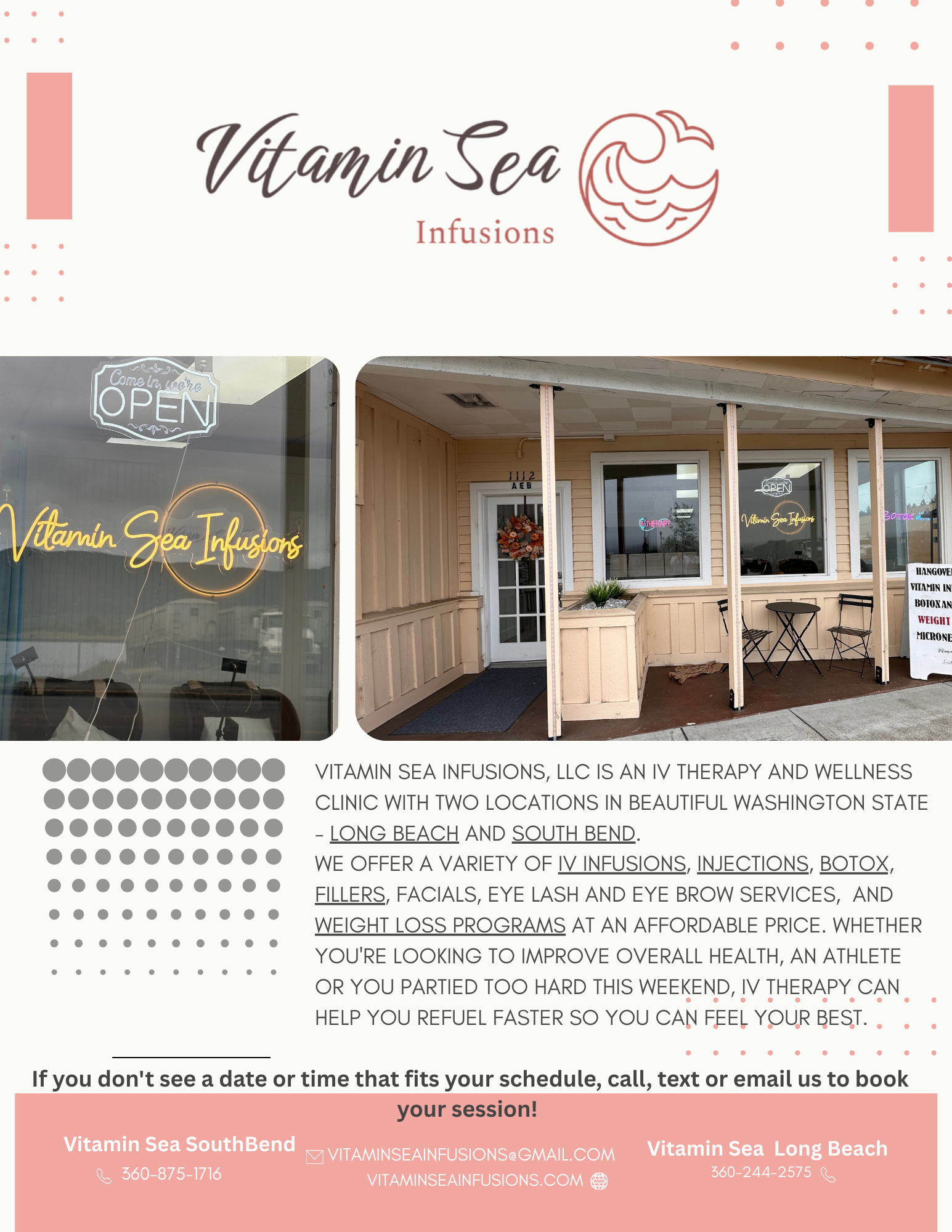 Vitamin Sea Infusions, LLC is an IV therapy and wellness clinic with two locations in beautiful Washington State -